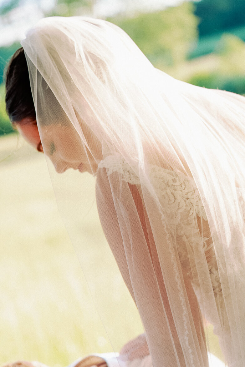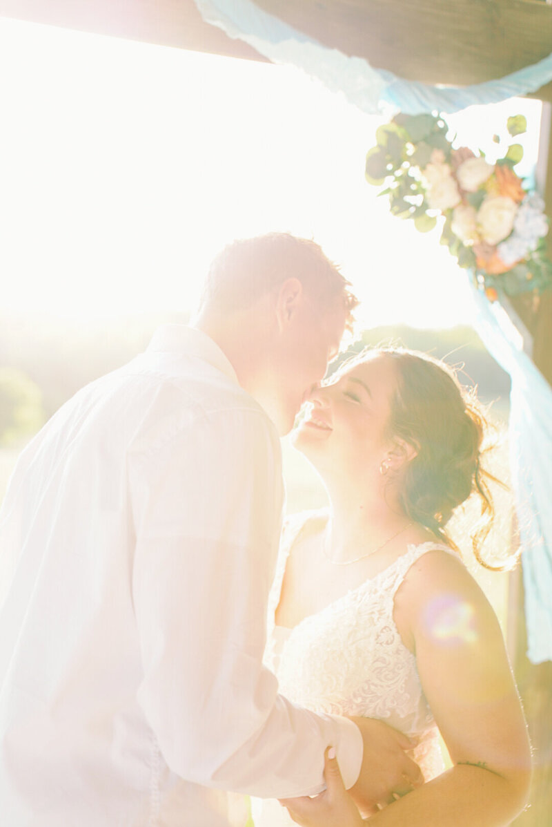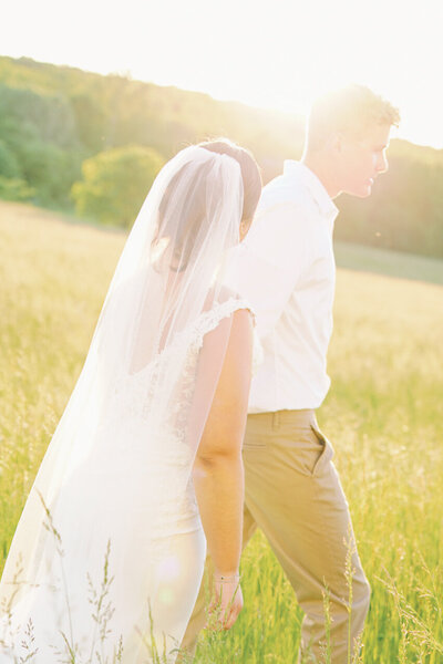 As the sun began to set around 7, we all made our way down to the field for golden hour. Josiah grabbed Alexi’s hand and slowly guided her through the foliage, her gown and veil perfectly draped out behind her as she followed his lead. The yellow hue of the sun was shining right at their heads, making them look almost angelic as they walked side by side. Perfect is the word I would use to describe this moment - although cliche of me - how else do you describe such a beautiful sunset acquainting such a beautiful couple?